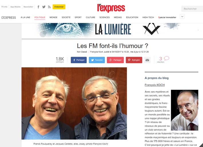 Le vendredi 13 octobre, se tiendra le 1er Festival d’Humour Maçonnique de Paris (à Vitry-sur-Seine). L’initiative existe déjà en province et Fouqueray s’est décidé à l’importer à Paris. Le succès sera-t-il au rendez-vous? Voir la vidéo